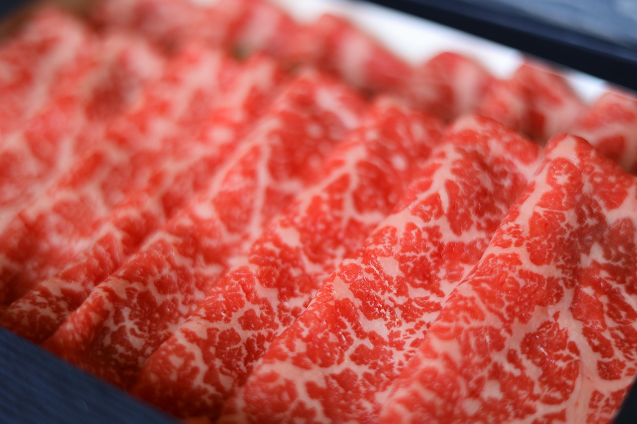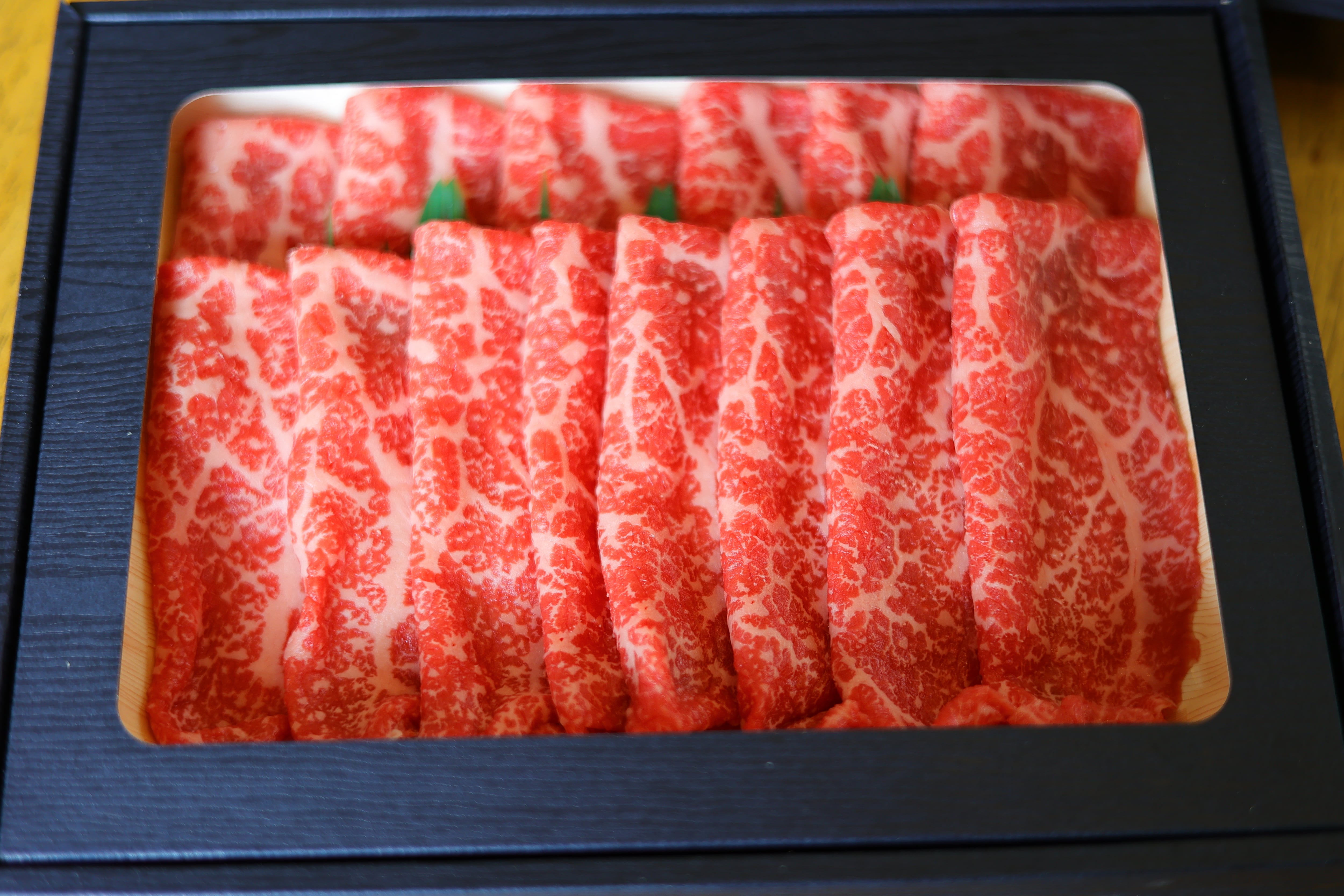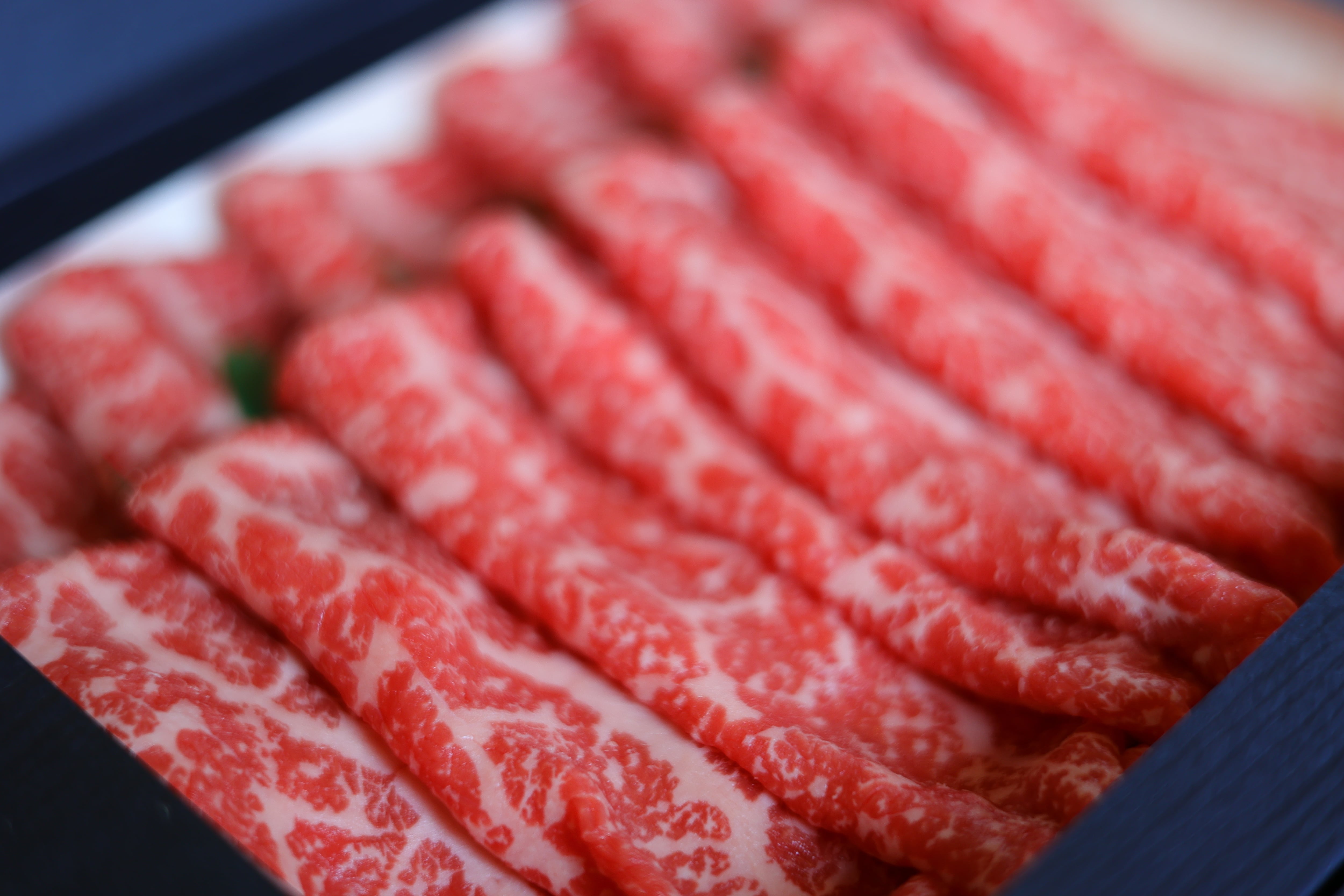 ※お肉が重なり合う部分は、空気に触れず酸化が起こらないため暗赤色となります。牛肉に鉄分が含まれている証拠でもあり、牛肉の特徴です。