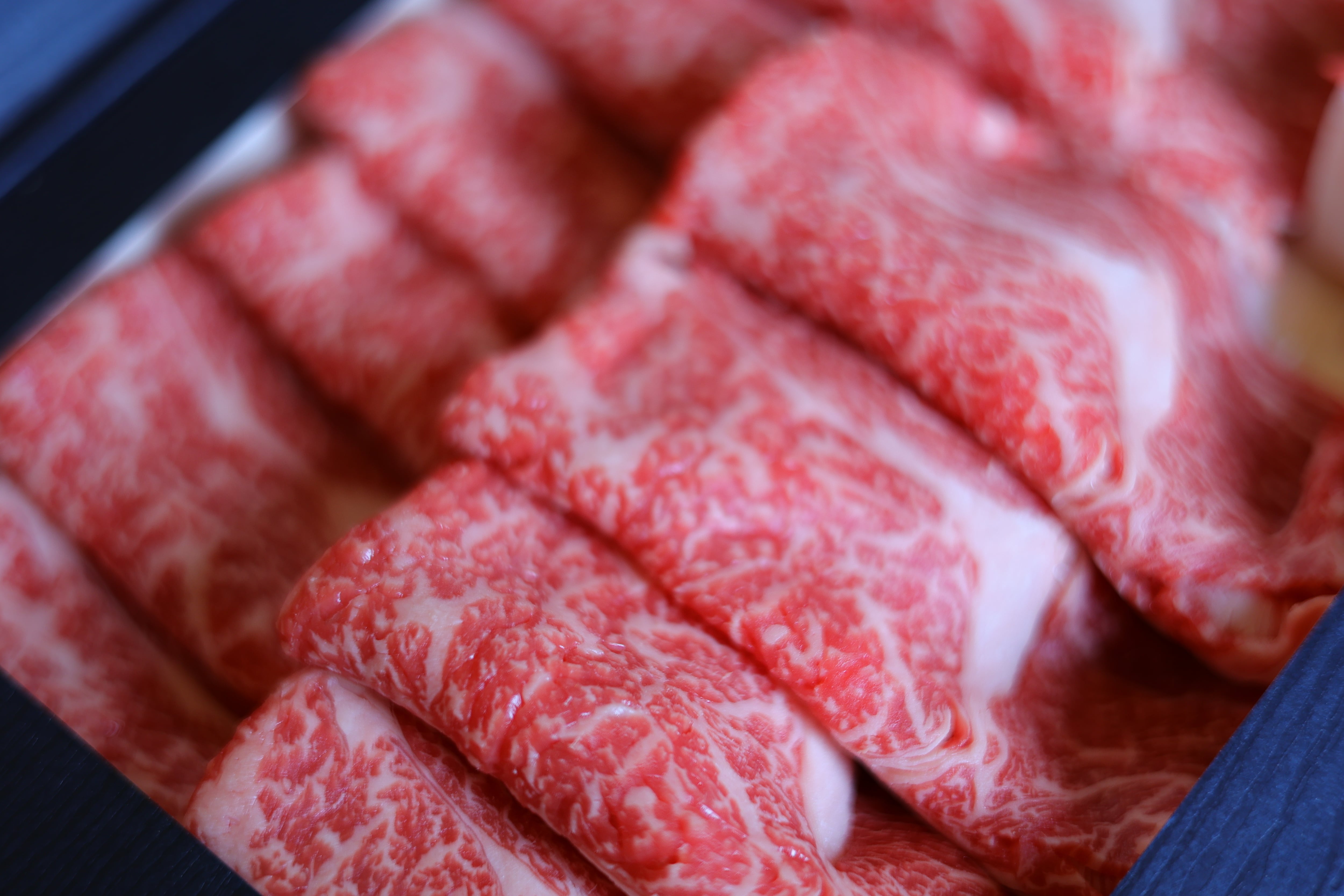 ※お肉が重なり合う部分は、空気に触れず酸化が起こらないため暗赤色となります。牛肉に鉄分が含まれている証拠でもあり、牛肉の特徴です。