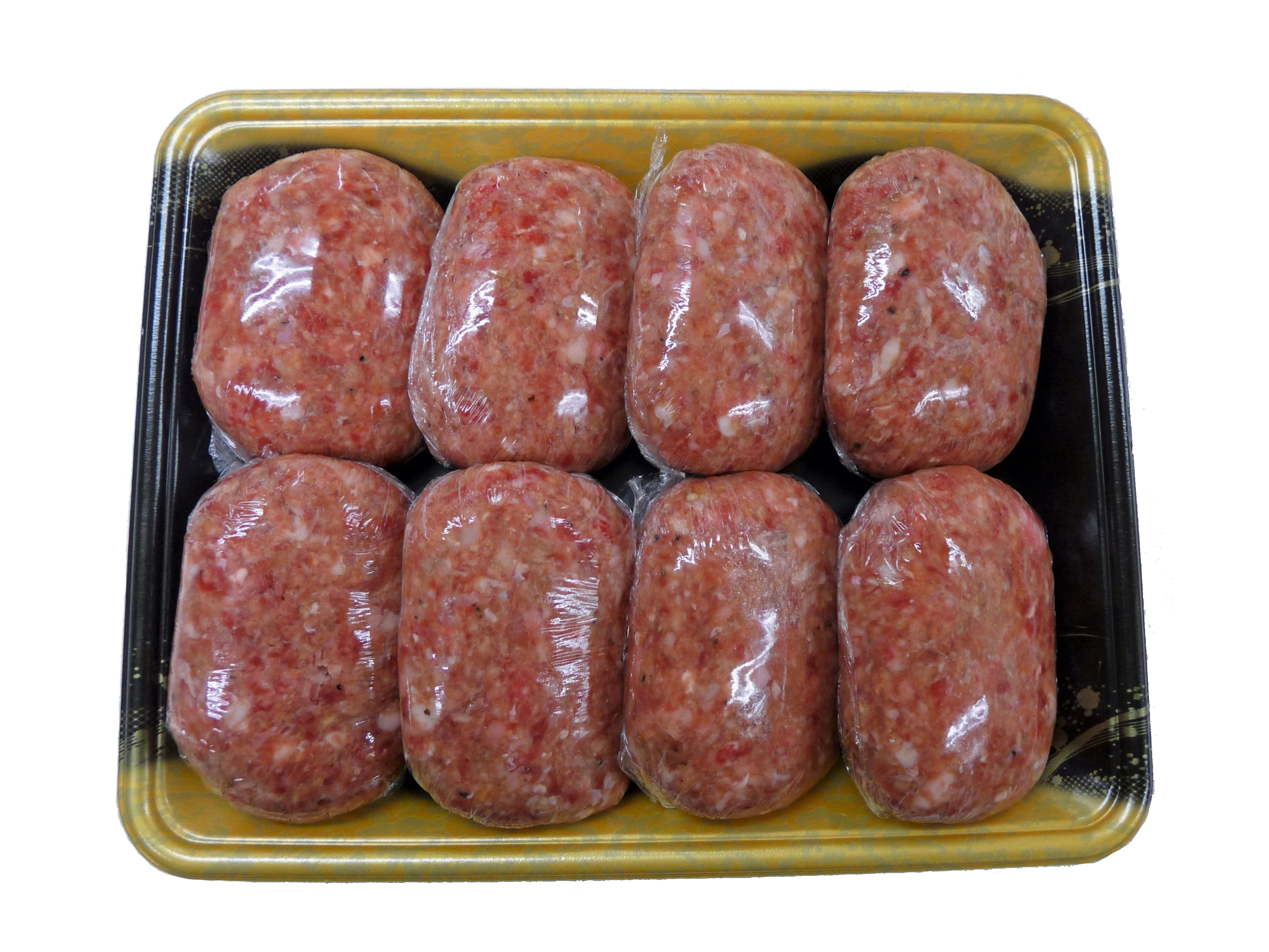 牛肉(旭志産)、豚肉(菊池産)、玉ねぎ、卵、醤油、パン粉、塩、胡椒、黒胡椒